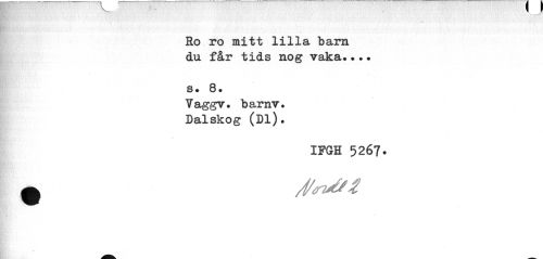 //// • ^ r //// ' '' • . • //// Ro ro mitt lilla barn du får tids nog vaka... //// s. 8. //// Vaggv. barnv. Dalskog (Dl). //// IPGH 5267* ////
