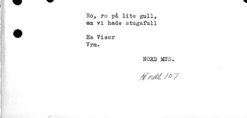 //// Ro, ro på lite gull, em vi hade stugafull //// ^^ Ha Visor //// Vrm. //// NORD MUS. //// » //// /V*t<U/<>7 //// s \ ////