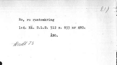 //// ¦ //// > . //// Ro, ro runtomkring //// 1:4. UÄ. S.L.S. 512 s. 833 nr 480. //// I //// j //// ÅBO. ' I //// A. ' //// y //// J //// i I ////