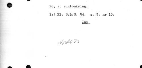 //// W Ro, ro runtomkring, //// 1:4 KB. S.L.S. 34. s. 5. nr 10. //// ÅBO. //// Zl/fitH 73 //// * //// < //// a j ////