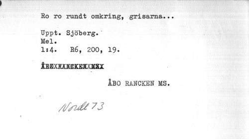 //// Ro ro rundt omkring, grisarna... //// 4 //// Uppt. Sjöberg.' Mel. //// Is4. B6, 200, 19. //// ifiSXMMKEXXXXX //// ÅBO RANCKEN MS. //// /t/si //// I ////