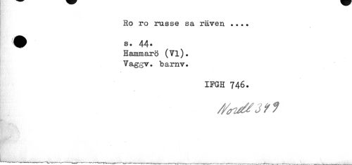 //// Ro ro russe sa räven ...» //// Q) s • 44• //// Hammarö (Vi). //// Vaggv. barnv. //// ? //// IFGH 746. //// < ////
