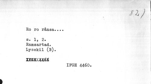 //// SI) //// Ro ro rånsa..?• //// s • 1, 2. //// Rams ar t ad. Lysekil (B). //// IFGH 4460. //// I i ////