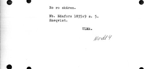 //// Ro ro skären. //// Kb. Edafors 1835:9 s. 5. Eneqvist. //// ULMA. //// \ //// « ////