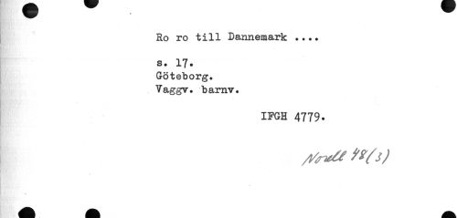 //// v //// ^ W //// . //// ¦ //// Ro ro till Dannemark ... //// ¦ //// s. 17. Göteborg. Vaggv. barnv. //// IFGH 4779. //// tys) //// \ ////