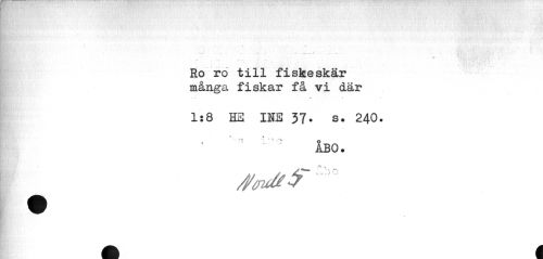//// Ro ro till fiskeskär många fiskar få vi där //// 1:8 EE INB 37» a. 240. //// "•• T //// • ^ '' ' ^ O //// ÅBO. ////