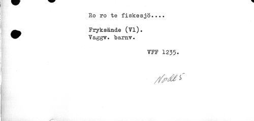 //// Ro ro te fiskesjö... //// •Fryksände (Vi). Vaggv. barnv. //// VFF 1235. ////