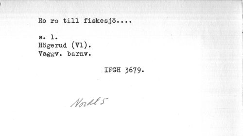 //// fio ro till fiskesjö... //// i h //// S. 1. //// Högerud (Vi). Vaggv» barnv. //// IFGH 3679» //// i. i ////