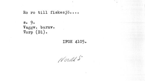 //// i //// Ro ro till fiskesjö... s. 9. //// Vaggv. barnv. Torp (Dl). //// IFGH 4105. //// N ////