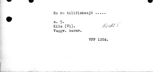 //// Ro ro tillfiskesjö ... //// ^^ s. 5. //// Kila (VI). //flM i //// Vaggv. barnv. //// VFF 1204. //// fe < •, v,*}-fc$5 ////