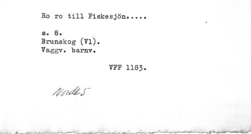 //// Ro ro till Fiskesjön... //// 4 //// s. 8. //// t //// Brunskog (Ti). Vaggv. barnv. //// VFF 1183. //// i ////
