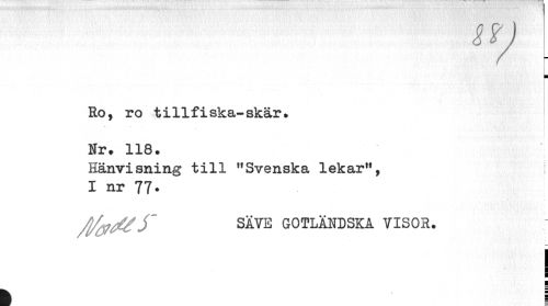 //// m //// Ro, ro ti11fiska-skär. //// i //// Nr. 118. //// Hänvisning till "Svenska lekar", I nr 77* //// J" SÄVE GOTLÄNDSKA VISOR. //// i ¦ //// | //// 1 1 ////