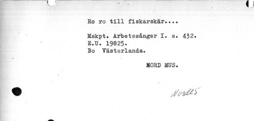 //// _X J //// Ro ro till fiskarskär».». Mskpt. Arbetssårxger I» s» 432. //// E.U. 19825- //// Bo Vasterlanda. //// HORD MUS. ////
