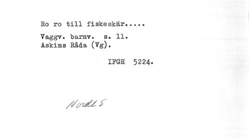 //// Ro ro till fiskeskär... //// Yaggv. barnv. s. 11. Askims Råda (Vg). //// IFGrH 5224. ////