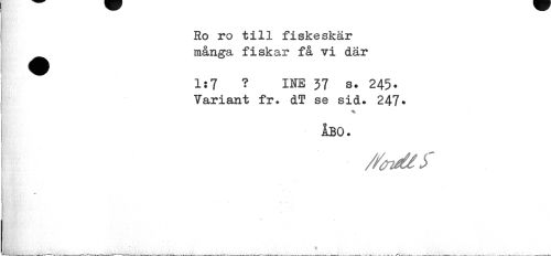 //// Ro ro till fiskeskär ^^ många fiskar få vi där //// 1:7 ? INB 37 S. 245• //// Variant fr. dT se sid. 247* //// ÅBO. //// //^dif //// t ////