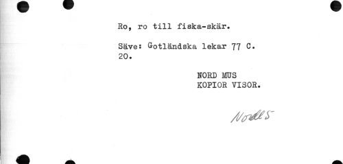 //// / //// Ro, ro till fiska-skär. //// Säves Gotländska lekar 77 C. 20. //// NORD MUS KOPIOR VISOR. //// /t/ad^y ////