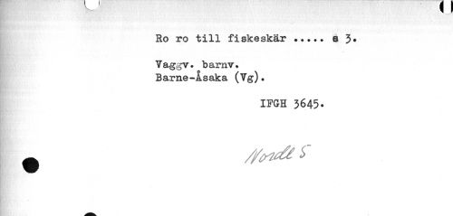 //// Ro //// ro till fiskeskär ••••• b 3» //// Vaggv» barnv. Barne-Asaka (Vg). //// IFGH 3645» ////