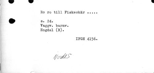 //// Ho ro till Fiskeskär ••••• //// Vaggv. b ar riv» Högdal (B). //// IFGH 4156. //// 4/crJéS- //// - s ////