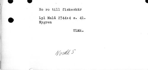 //// — I //// | Ro ro till fiskeskär //// •Lpl Malå 2744«4 s. 41. Nygren //// ULMA. ////