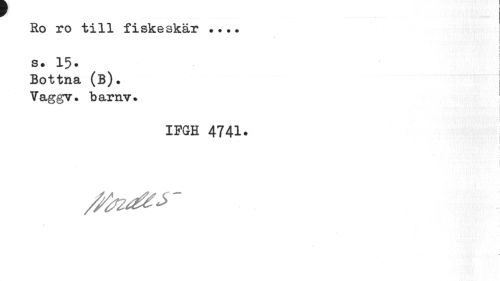 //// r //// Ro ro till fiskeskär ... //// i //// i //// i //// s. 15* Bottna (B). Vaggv• barnv» //// IPGH 4741 • //// i ////