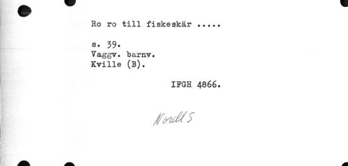 //// Ro ro till fiskeskär... //// S. 39. //// Vaggv. barnv. Kville (B). //// IFGH 4866. //// /TntttS ////