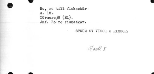 //// Ro, ro till fiskeskär s. 18. //// Törmersjö (Hl). Jmf. Ro ro fiskeskär. //// STRÖM SV VISOR 0 RAMSOR. //// /t/»/cr ////