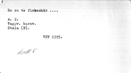 //// Ro ro te fiskeskär s. 2. //// Vaggv. b arnv• Stala (B). //// VFF 2395. ////