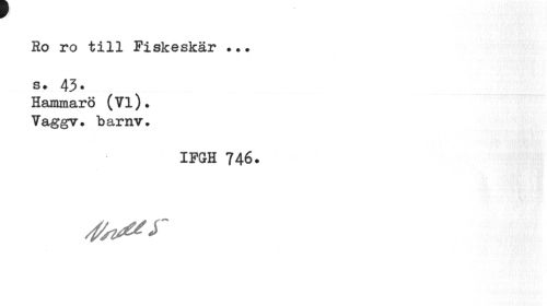 //// Ro ro till Piskeskär ..• //// s. 43. //// Hammarö (Vi). Vaggv. b arnv. //// IFGH 746. ////