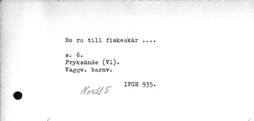 //// Ro ro till fiskeskär ...» s ? 6# //// Fryksände (Vi). Vaggv? barnv. //// IFGH 935. //// # AMtr //// r / ////