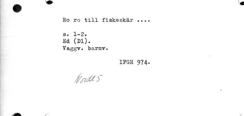 //// Ro ro till fiskeskär ... //// s. 1-2. //// Ed (Dl). Vaggv. barnv. //// IFGH 974. //// jfadtsr //// * //// Jtk^ ////