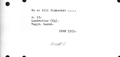 //// Ro ro till fiskeskär ... s. 12» //// Landvetter (Vg). Vaggv. barnv. //// IFGH 5315* ////