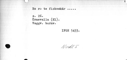 //// Ro ro te fiskeskär ... s. 26. //// Örmevalla (Hl)» Vaggv. barnv. //// IFGH 5433. ////