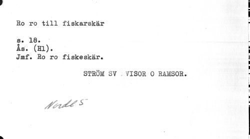 //// k I //// Ro ro till fiskarskär f //// s. 18. //// Ås. (Hl). j //// Jmf. Ro ro fiskeskär. i //// i //// STRÖM SV VISOR 0 RÅMSOR. //// { //// 4 //// k -i ////