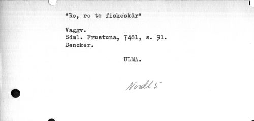 //// • ' //// !,Ro, ro te fiskeskär11 Vaggv. //// Sdml. Frustuna, 7481, s. 91. Dencker. //// ULMÅ# ////