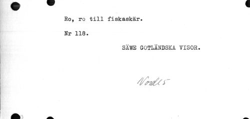 //// Ro, ro till fiskaskär. Nr 118. //// SÅWE GOTLÄNDSKA VISOR. //// /j/wfrr ////