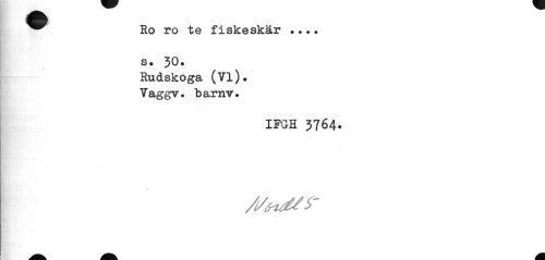 //// ^^ Ro ro te fiskeskär ... //// s. 30. //// Rudskoga (Vi). Vaggv. barnv. //// ifgh 3764. ////