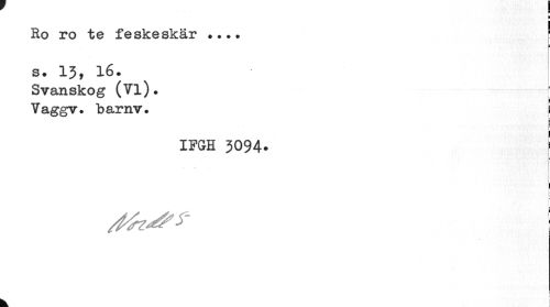 //// g //// Ro ro te feskeskär ... ! //// s• 13, 16. [ //// Svanskog (Vi). //// _ i //// Vaggv. barnv. i //// f //// IFGH 3094. | //// i //// > //// /fa^f ! k \ ////