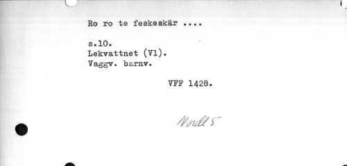 //// ""-.i- //// Ro ro te feskeskär ... //// s.10. //// Lekvattnet (Vi). Vaggv. barnv. //// VPP 1428. ////