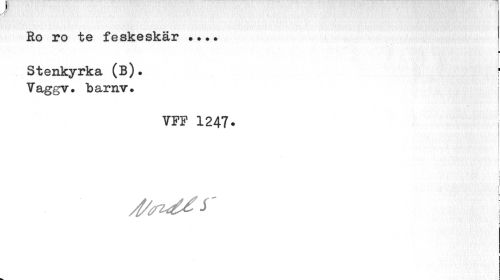 //// Ro ro te feskeskär •••• I //// ¦ //// Stenkyrka (B). ; //// Vaggv* barnv. //// VFF 1247• //// i //// i j ////