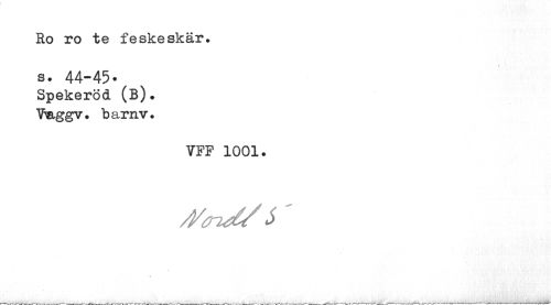 //// Ro ro te feskeskär ... //// A 'l,, //// s. 44-45• //// Spekeröd (B). Vaggv. barnv. //// VFF 1001. //// sVtnJ/S' ////