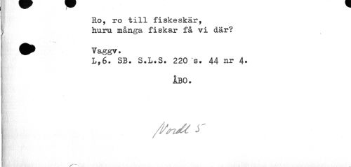 //// I — ^ //// Ro, ro till fiskeskär, ) huru många fiskar få vi där? //// Vaggv. //// L,6. SB# S.L.S. 220 s. 44 nr 4. //// ABO. //// I /Ifn/t r //// """"-v ////