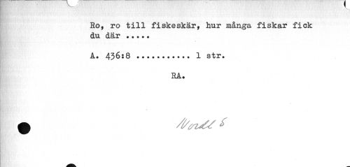 //// 1., //// Ro, ro till fiskeskär, hur många fiskar fick du där ... //// A. 436:8 ... 1 str. //// RA. ////