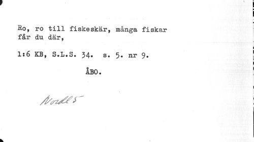 //// F //// b //// L //// Ro, ro till fiskeskär, många fiskar får du där, //// 1:6 kb, S.l.S. 34. s. 5. nr 9. //// i //// åbo. ! //// i //// ¦ //// p //// I //// /foz^S' \ //// i ////