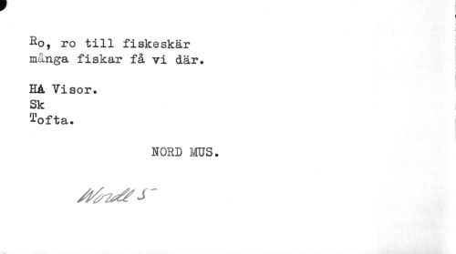 //// i //// j //// c //// L ¦ //// Ro, ro till fiskeskär många fiskar få vi där. //// i //// HA Visor. Sk //// Tofta. | //// NORD MUS. ////