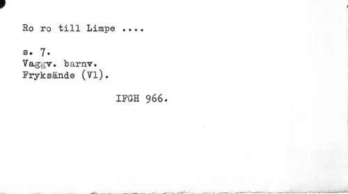 //// i //// : //// f //// t //// Ro ro till Limpe ... S. 7. //// Vaggv. barnv. Fryksände (Vi). //// IFGH 966. //// I //// t //// i 1 //// 1 i //// i > //// \ //// i //// .. ' - ___ . . ___ ___ ////