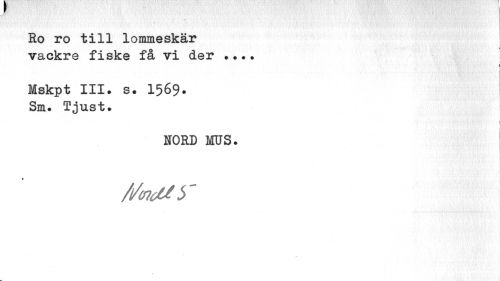 //// Ro ro till lommeskär vackre fiske få vi der ..•. //// i //// Mskpt III. s. 1569. Sm. Tjust. //// 1 //// HORD MUS. //// /i/cnclty ////