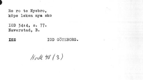 //// » //// Ho ro te Nyebro, köpe leken nya sko //// IOD 34*4, s. 77» //// Naverstad., B. //// ISD IOD GÖTSBORG. ////