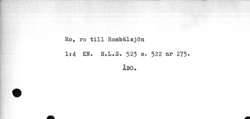 //// -'''i] t ^'' *¦•»<« >1 §i //// Ro, ro till Rombälsjön //// 1:4 KH. S.L.S. 523 s. 522 nr 275» //// ÅBO. ////