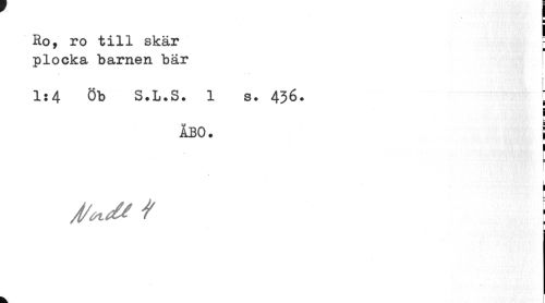 //// Ho, ro till skär ! //// plocka barnen bär //// f //// 1:4 Öb S.L.S. 1 s. 456. ; //// ¦ //// 1 //// ÅBO. | //// 1 //// L //// I i //// t : //// k ////
