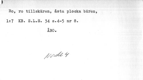 //// T //// Ro, ro tillskären, åsta plocka bären, //// 1:7 KB. S.L.S. 34 e.4-5 nr 8. //// ÅBO. //// /ss^v ////